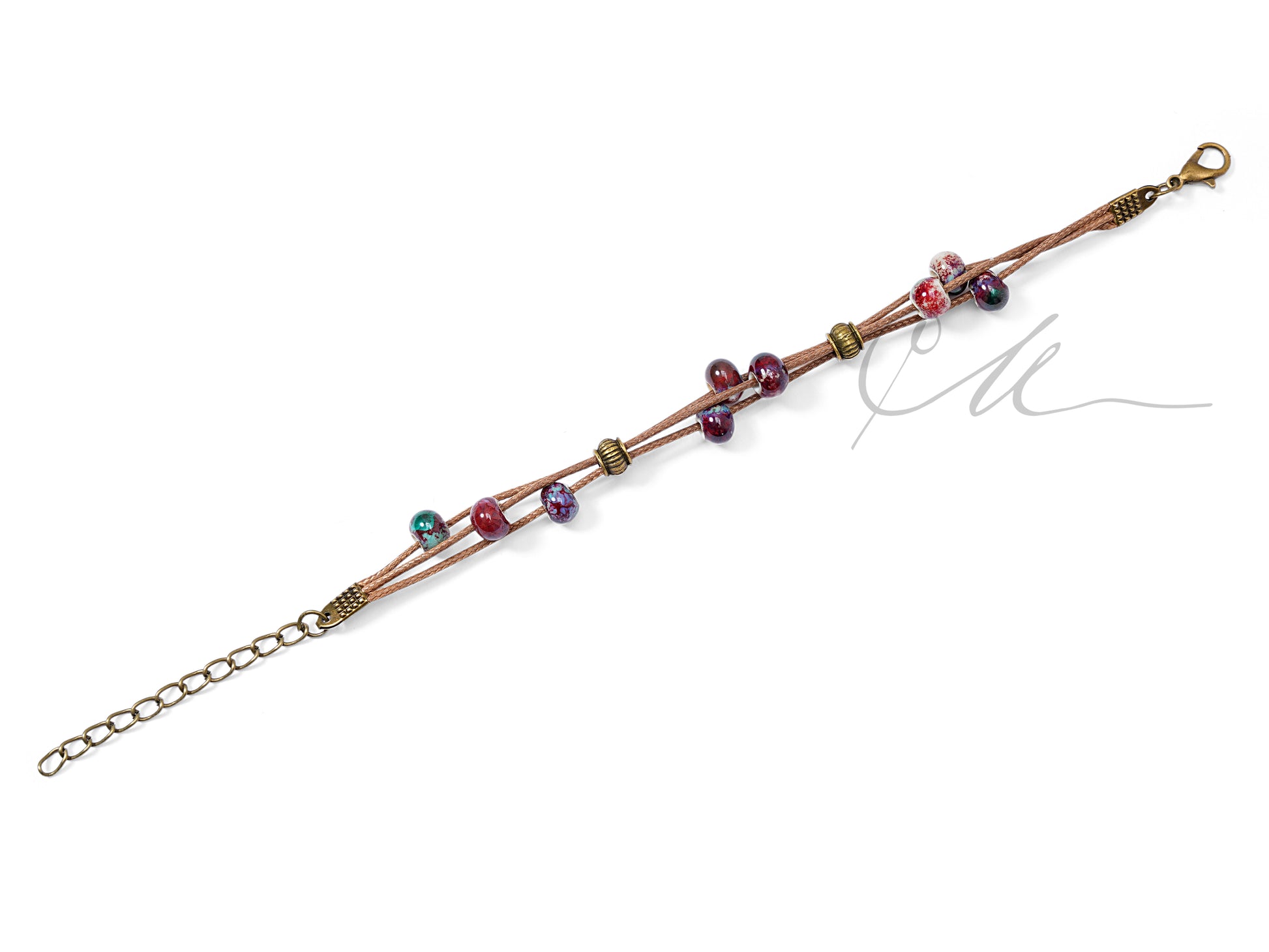 Ayra is a quiet celebration of rhythm and asymmetry β a bracelet composed of glazed ceramic beads threaded through three braided cords in a staggered pattern. Each strand weaves its own path, creating a subtle dance of texture, weight, and space.