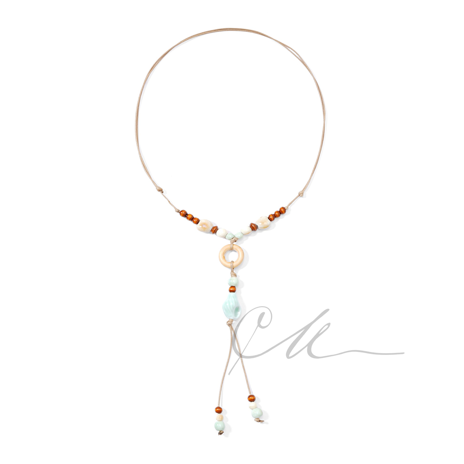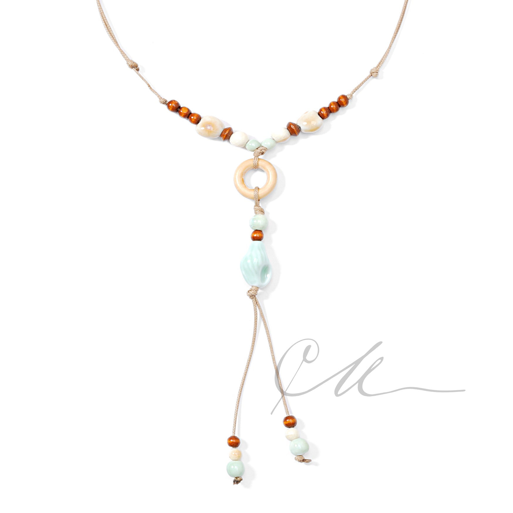Featuring a ceramic conch pendant, gently polished by hand, this necklace brings coastal calm wherever you go. The hand-braided beige cord adds a sandy, natural touch, like footprints along a quiet shoreline.